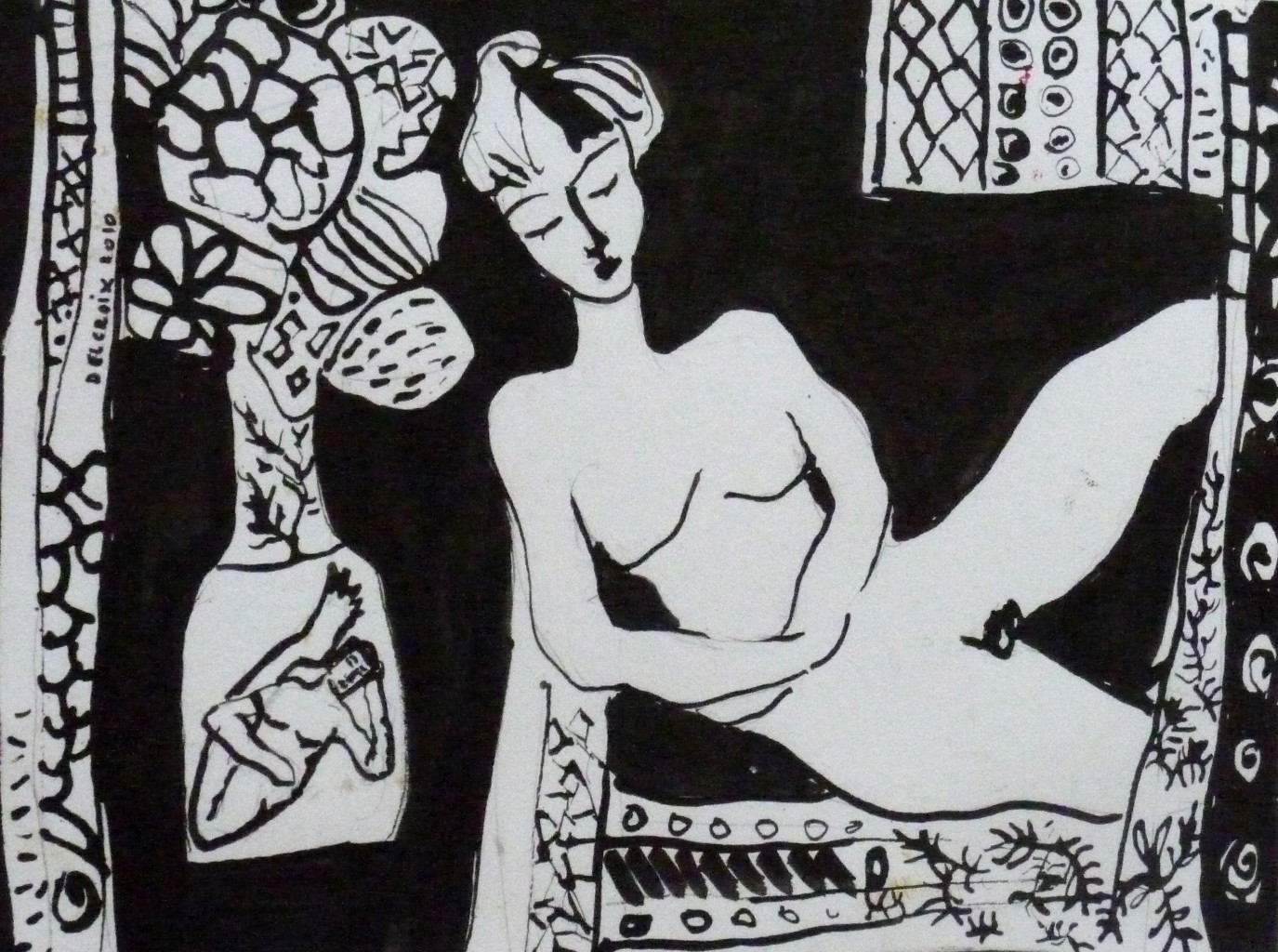 Femme endormie et sciapode encre sur papier 36cmx 48.5 cm