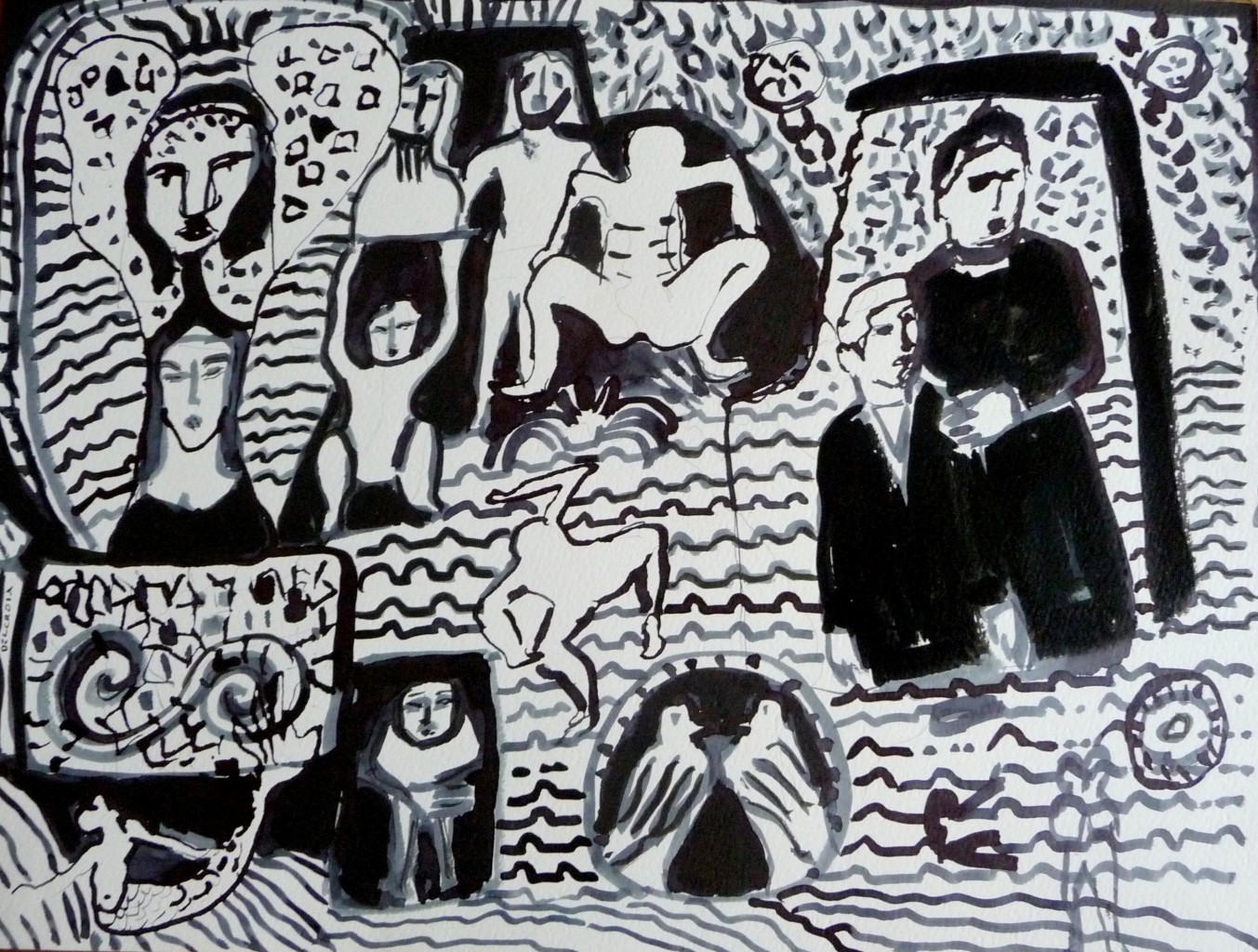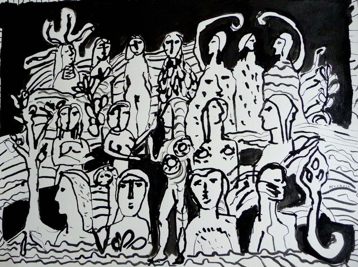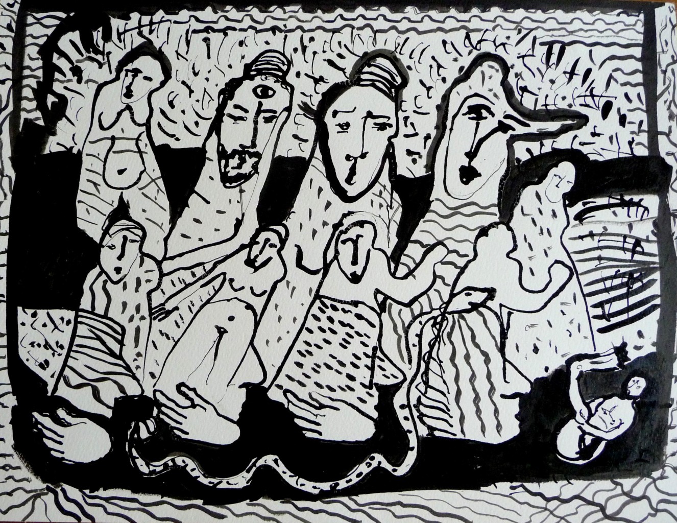 Humaines attitudes Encre sur papier 56cm x 42cm