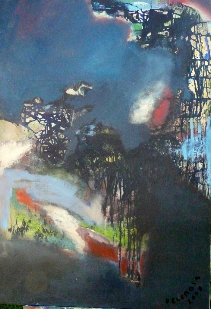 N° 1 Encre acrylique et huile sur toile 116x89 cm 2008 Les ombres effrayantes Se déchirent S'effacent Voiles noirs inquiétants Révélant la naissance d'un monde merveilleux Lumières et couleurs Espérance et chaleur Univers en son aube Surgissant de la nuit Promettant l'émotion Du chant du rossignol L'éclosion d'une rose Le vol d'un papillon Christian Navarro